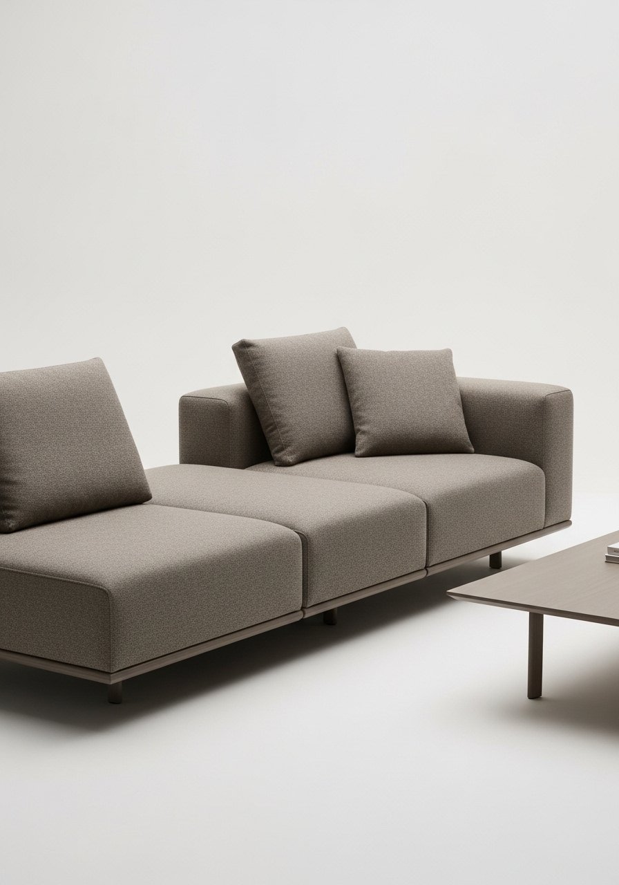 A low-profile modular sofa keeps sightlines open in small rooms. My 92-inch modular in warm gray creates defined zones without blocking flow. Choose pieces with exposed legs to keep air under the furniture. I bought a neutral modular and added this cream chunky knit throw. Mistake: picking a bulky, blocky sofa that visually closes the space—scale matters for calm proportions.