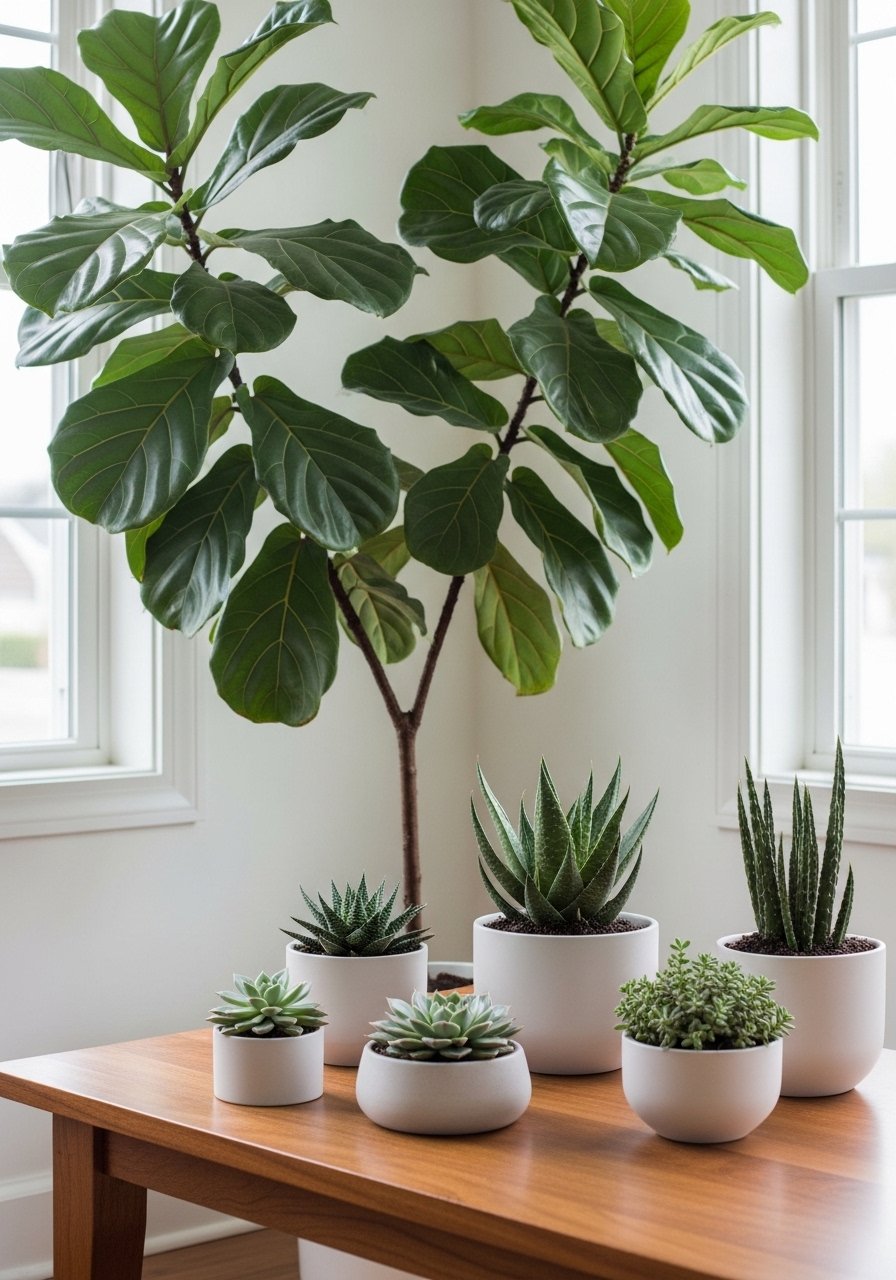 I invested in a single tall plant—an artificial 6ft fiddle leaf fig—for sculptural impact without constant care. It made the room feel alive and intentional. I used this artificial fiddle leaf fig tree, 6ft. Mistake: scattering many tiny plants—one statement plant has more visual pull than five small ones. Plants fix the common problem of neutral rooms feeling sterile.