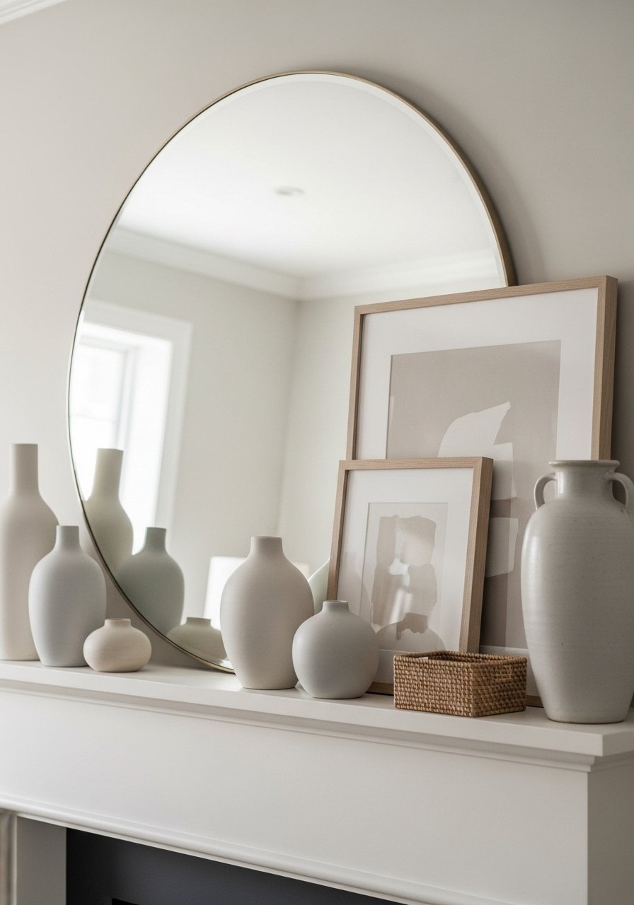 Soft Neutral Fireplace Mantel Styling