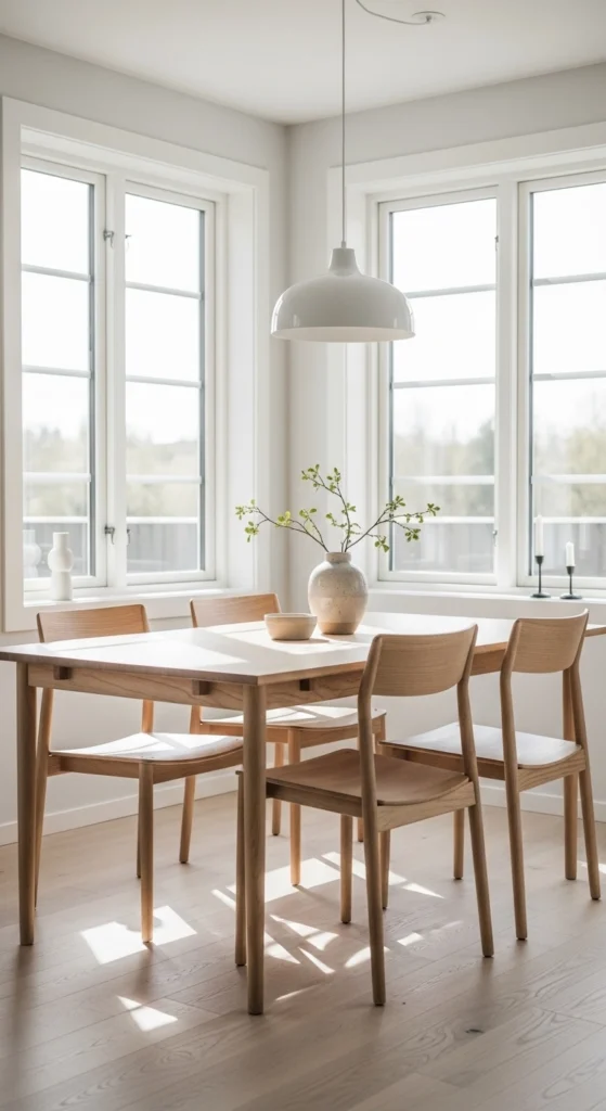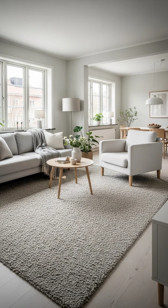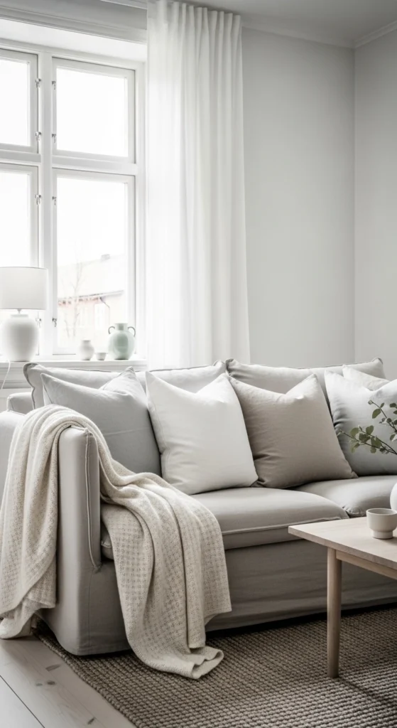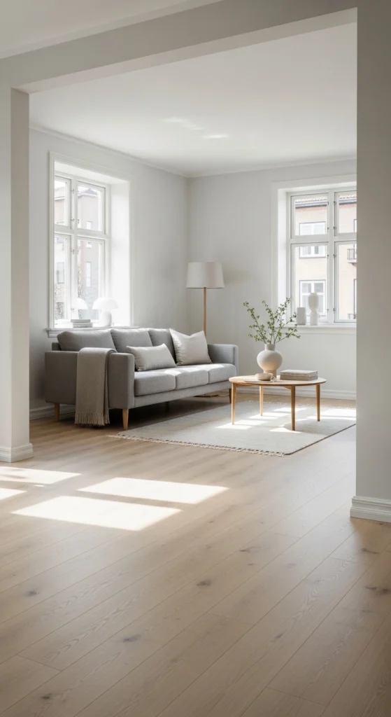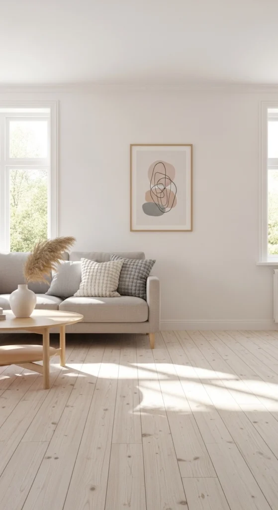 Scandinavian homes rely on calm color layers instead of bold contrast. White, beige, light gray, and soft brown work together without sharp edges.
