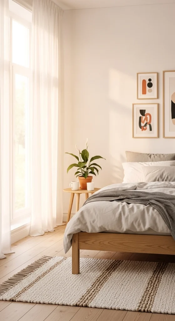 Layer textures instead of colors. Linen sheets, cotton blankets, and soft rugs add comfort.