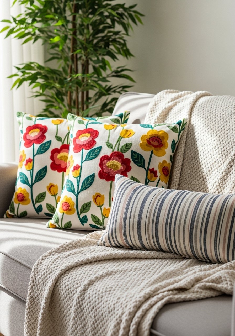 5. Stripes and Florals: Playful Pillow Mixing That Actually Works