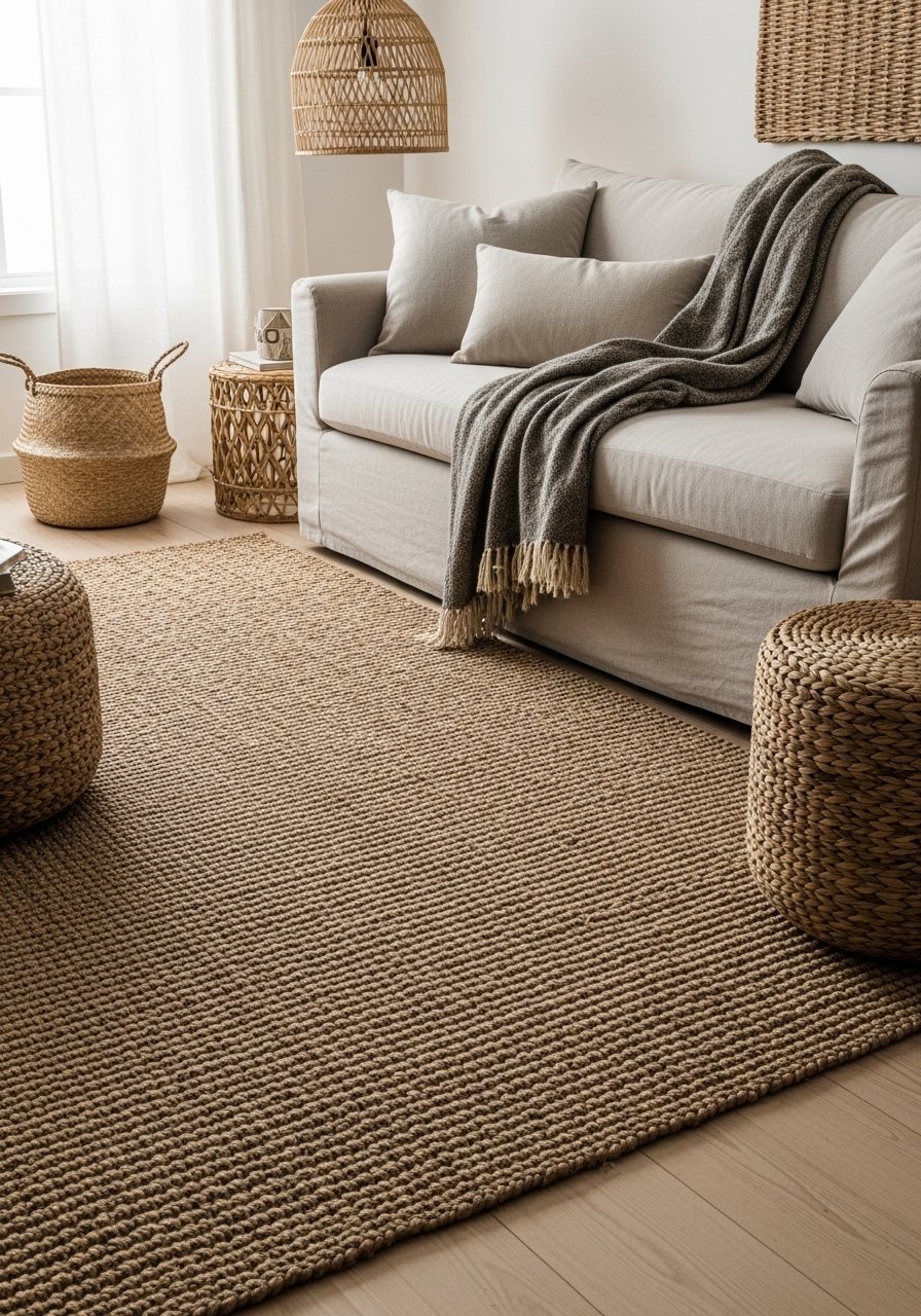 8. Coastal-Organic Rug + Linen Combo for Breezy Rooms