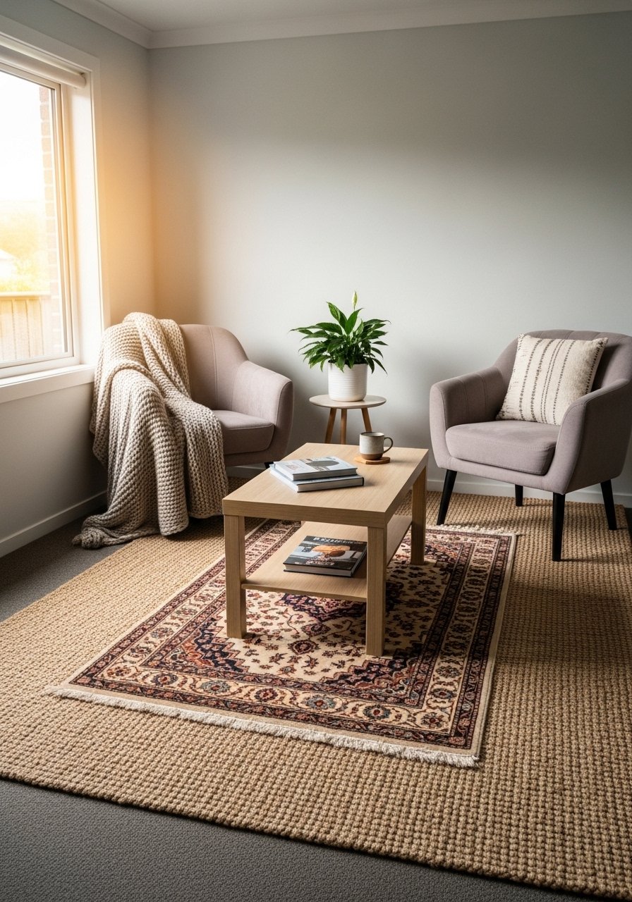 Layering rugs is especially great in rentals—no demolition, high impact.