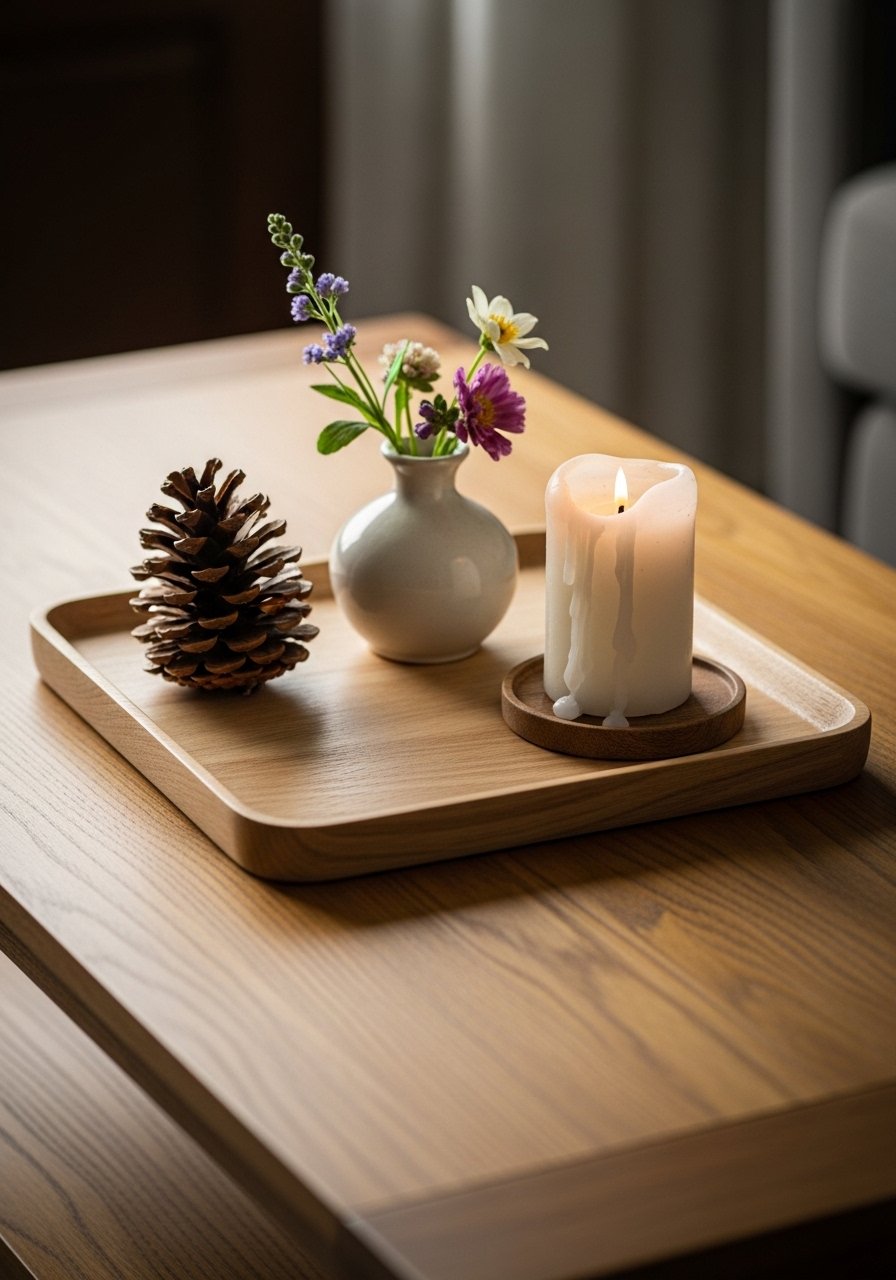 I use a tray to corral small seasonal items—candle, small vase, a shell in summer, a pinecone in winter. It keeps surfaces tidy and changes the room’s story in minutes.