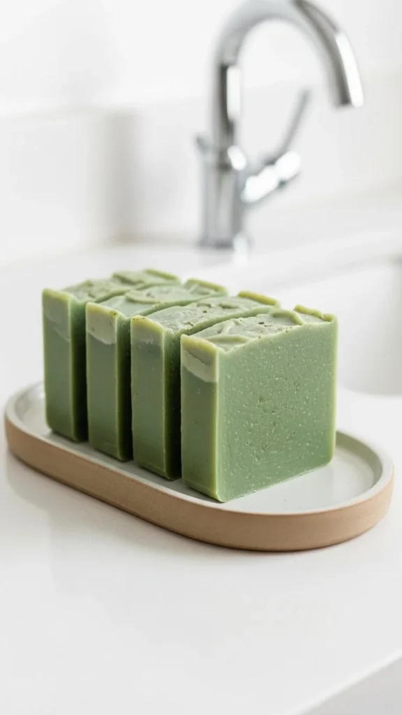 Soap bars in green tones can double as decor. Place them on a simple dish near the sink.