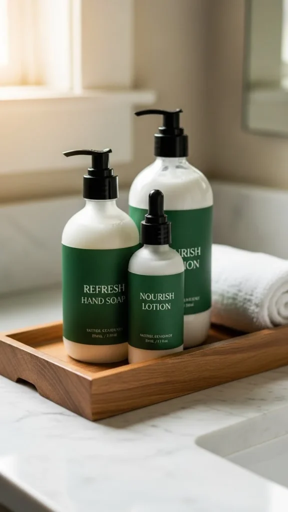 Use it to group everyday items like soap, lotion, or cotton jars. This keeps the counter tidy while adding style.