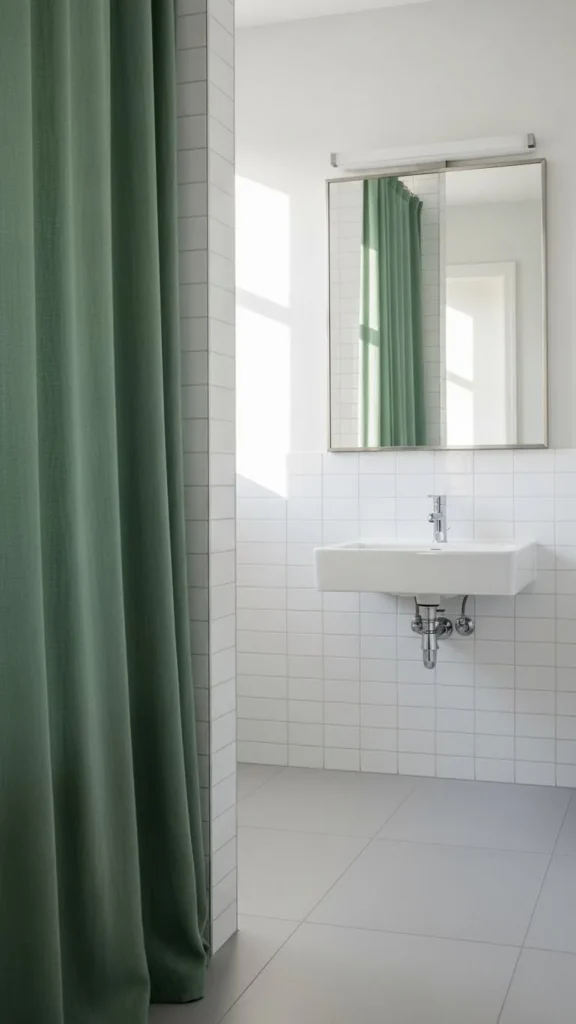 3. Soft Green Shower Curtain Accent