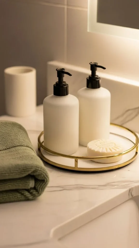 Pair it with a matching toothbrush cup or tray to keep things coordinated. Stick to two or three items only. This avoids visual overload.