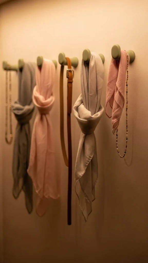 Paint or wrap hooks in green tones. Hang lightweight items like scarves.