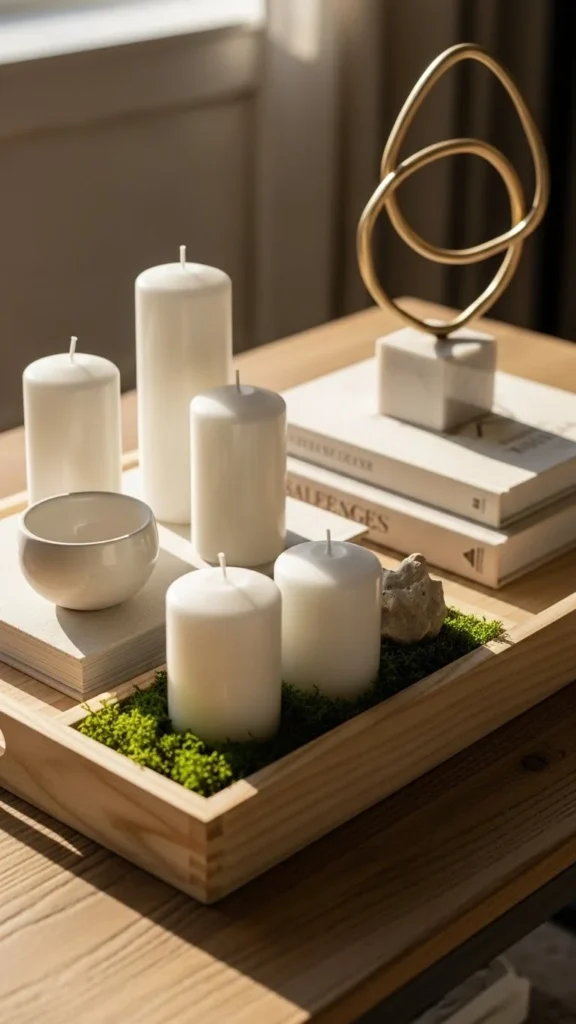 Group them on a tray to keep things tidy. This works well on coffee tables or consoles.