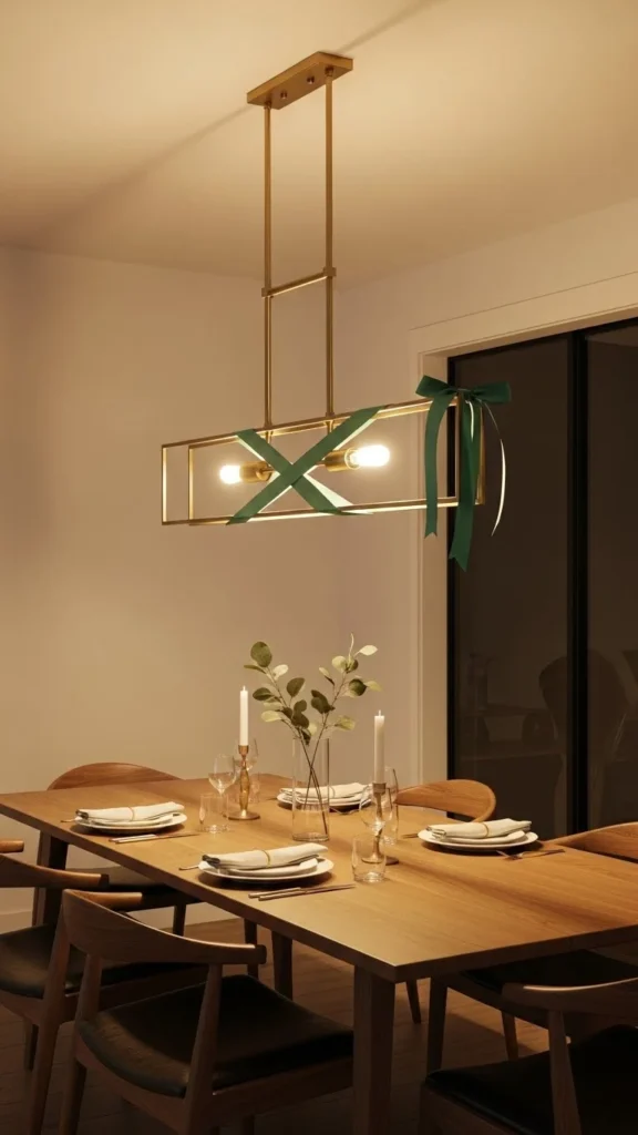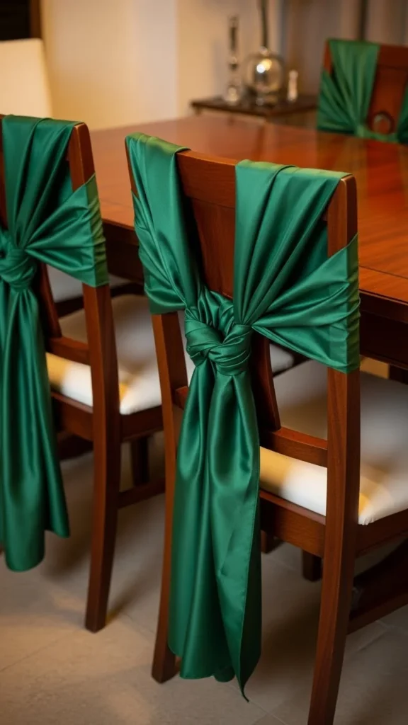 Add green fabric sashes to chair backs for a soft decorative layer. Loose knots feel welcoming and easy.