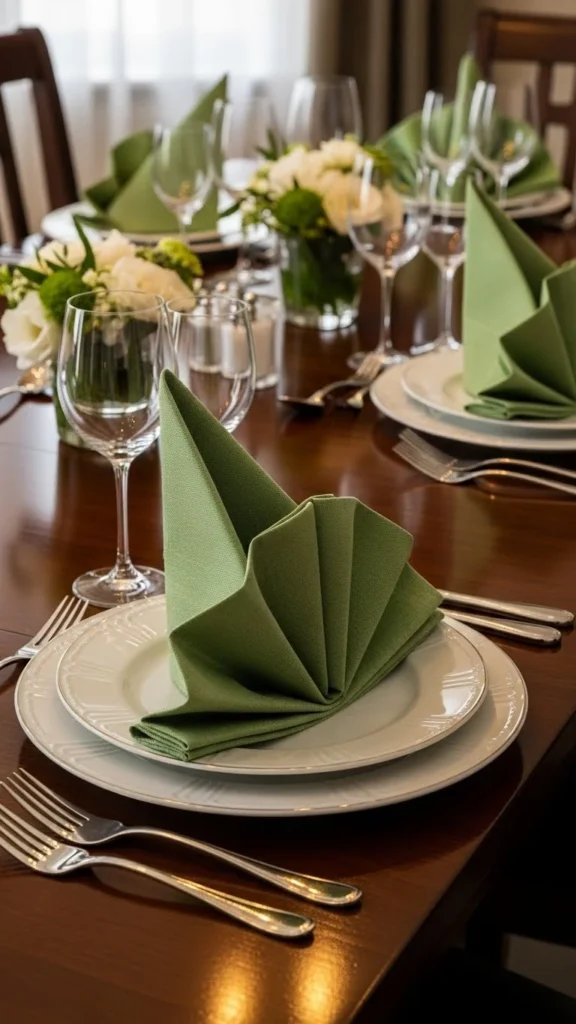 Linen napkins add texture and calm color. Soft green shades work best for an elegant look.