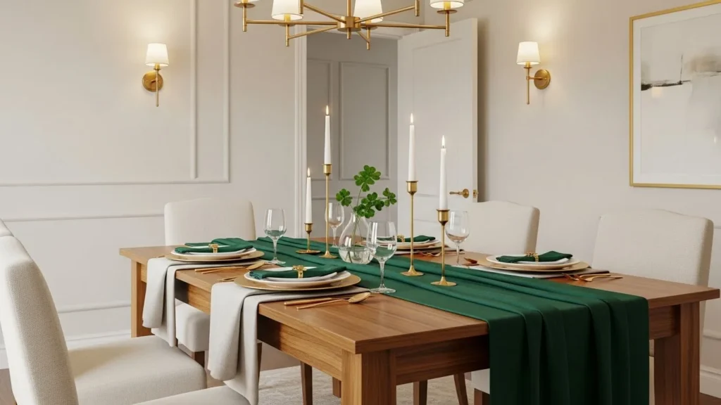 St Patrick’s Day dining room decor can feel refined without losing its festive charm. With thoughtful color choices, soft textures, and a few intentional details, your dining space can feel welcoming and styled for guests without feeling busy or themed. These ideas focus on simple updates, budget-friendly swaps, and easy DIY touches that suit everyday homes. Whether you’re hosting a full dinner or a quiet meal with family, these ideas help your dining room feel special for the occasion.