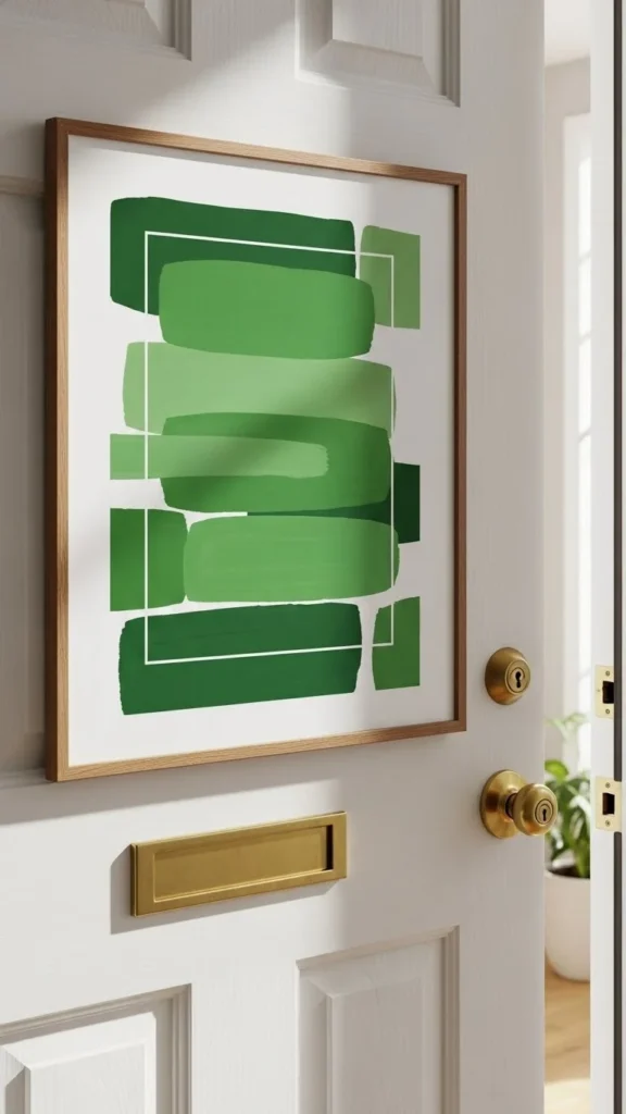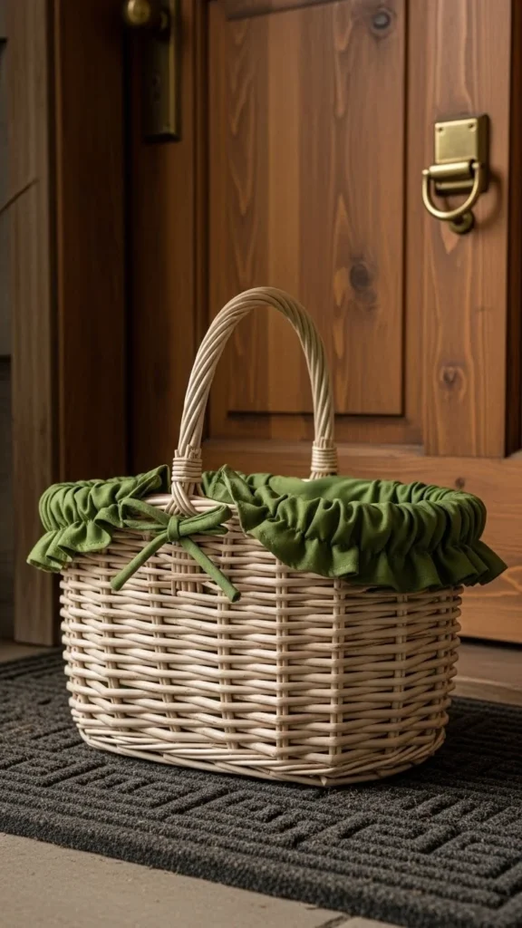 Line a basket with green fabric and place it near the door. This adds texture without hanging anything.