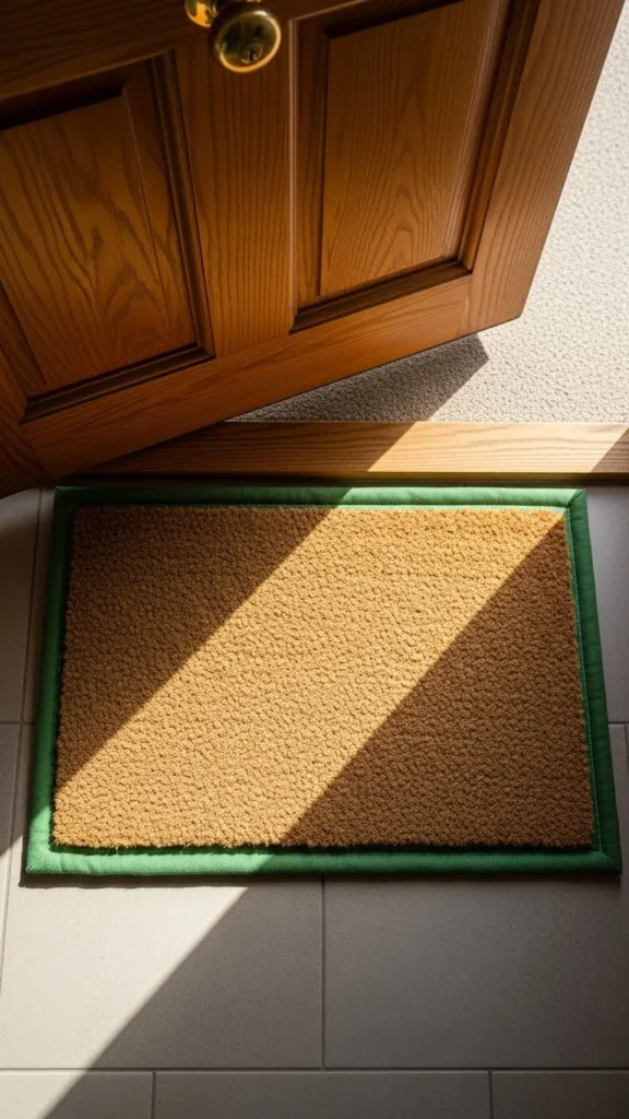 This keeps the entry grounded and tidy. DIY mat updates are affordable and fast.