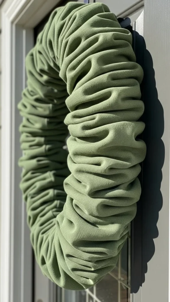 Secure the garland around the door frame using removable hooks. Keep the fabric loose so it moves gently with the breeze. Mixing light and dark greens adds interest without extra cost.