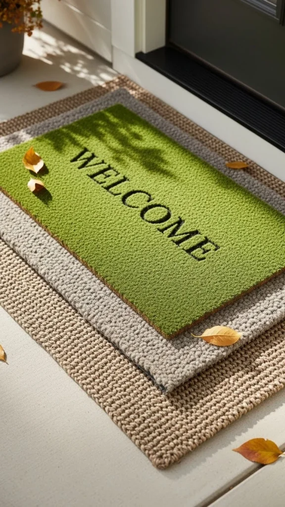 6. Layered Doormats in Green Tones