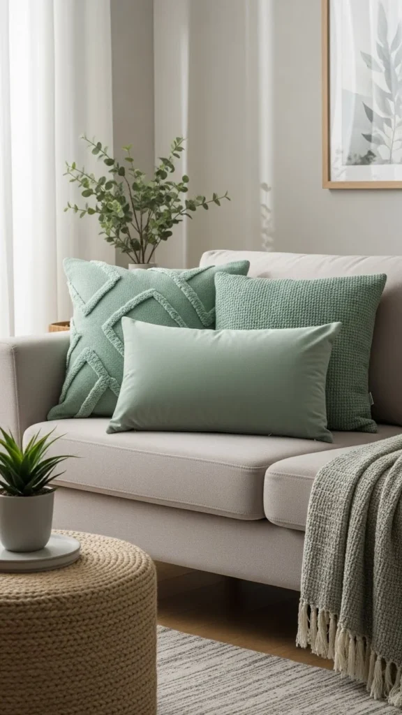 1. Soft Green Throw Pillows