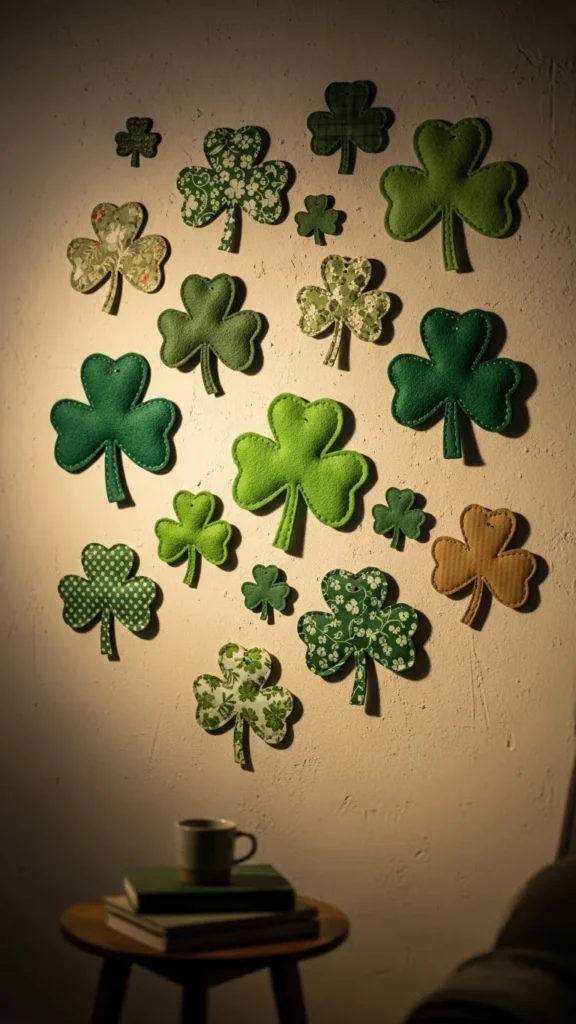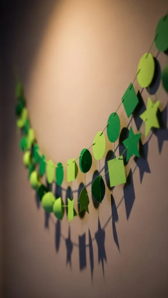 Paper garlands are light and playful. Cut shamrock or circle shapes from green paper. String them together with thread or twine. Keep spacing even for a clean look.