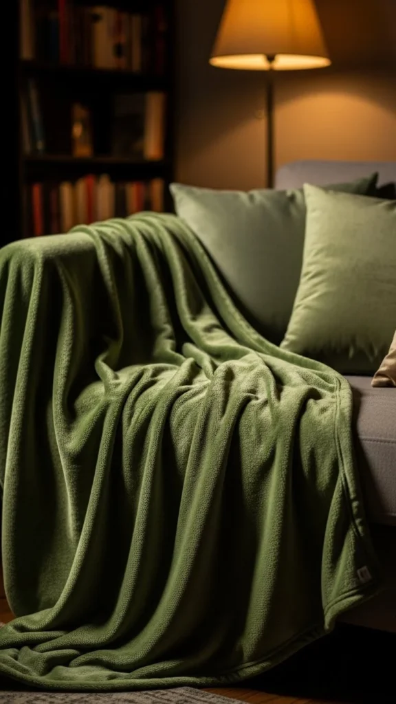 A green blanket brings comfort and color at the same time. Drape it casually over a sofa or chair. Choose a soft texture that invites use.