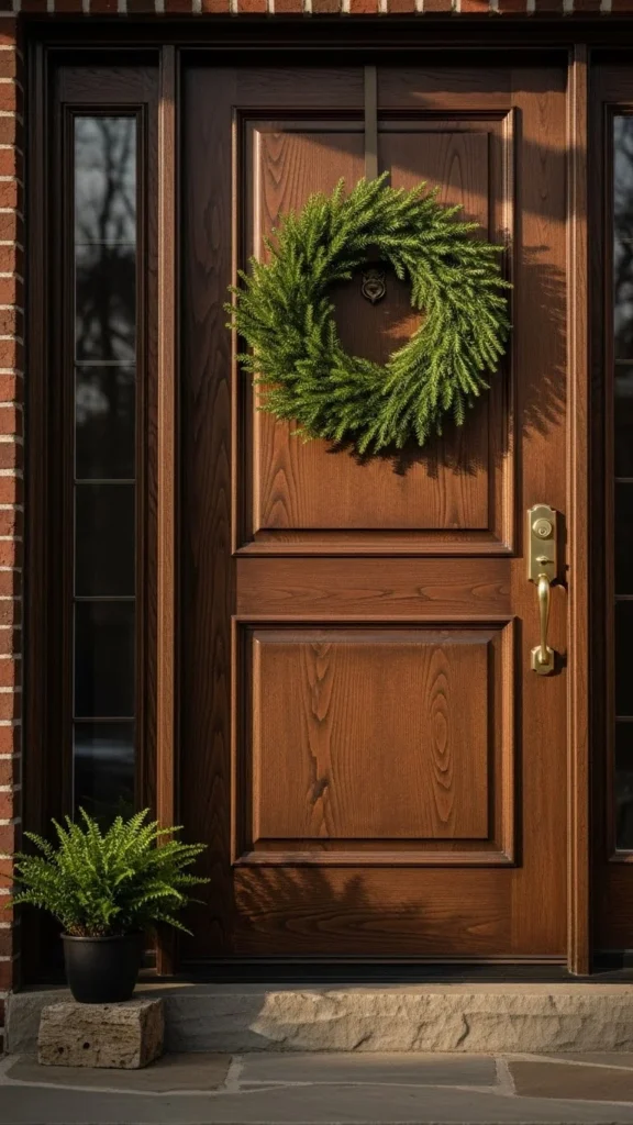 A wreath sets the tone before anyone enters your home. Use faux greenery or real branches tied together. Keep the design simple.
