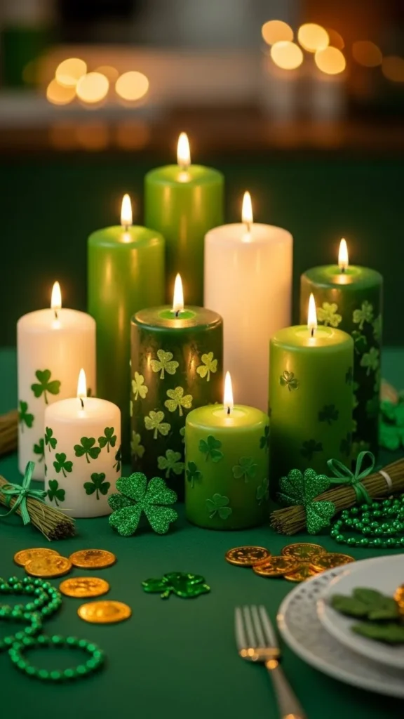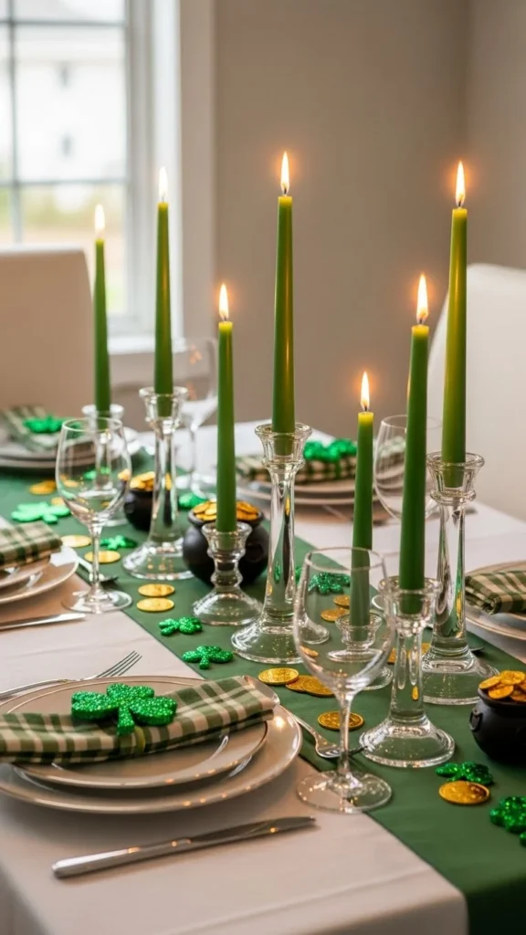 Candles add warmth quickly. Use green and white tapers or small pillars. Group them in odd numbers for a relaxed look. Keep holders simple. Even clear glass jars work. This setup suits evening gatherings without much prep.