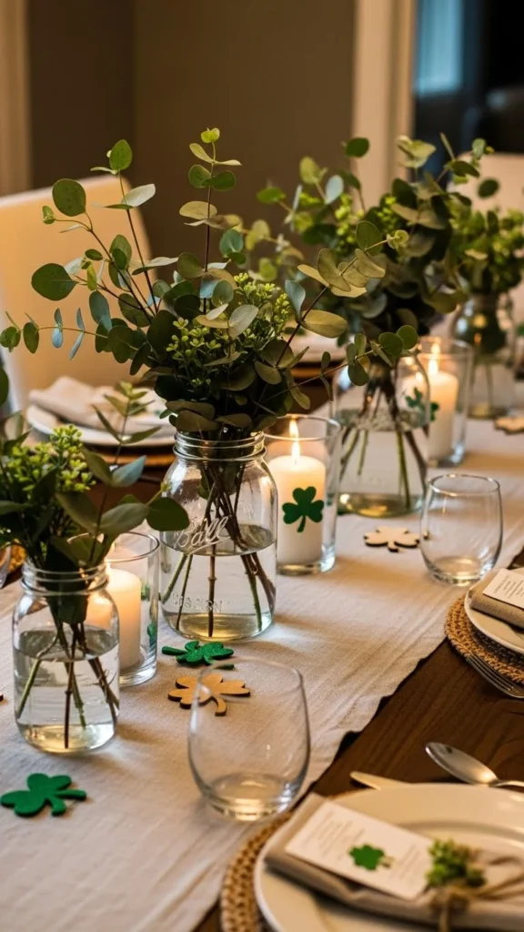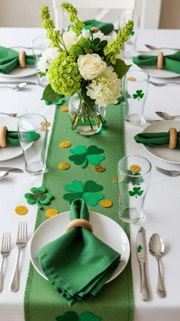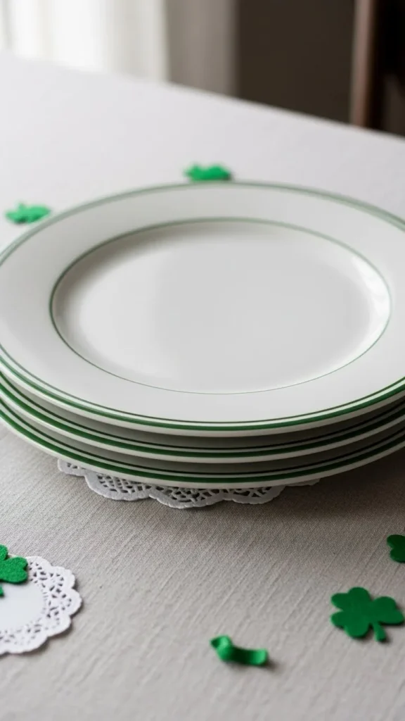 Paper clovers are easy to make and cost almost nothing. Use green cardstock or construction paper. Place one at each setting or scatter lightly down the table. Keep them small so they don’t clutter the space.