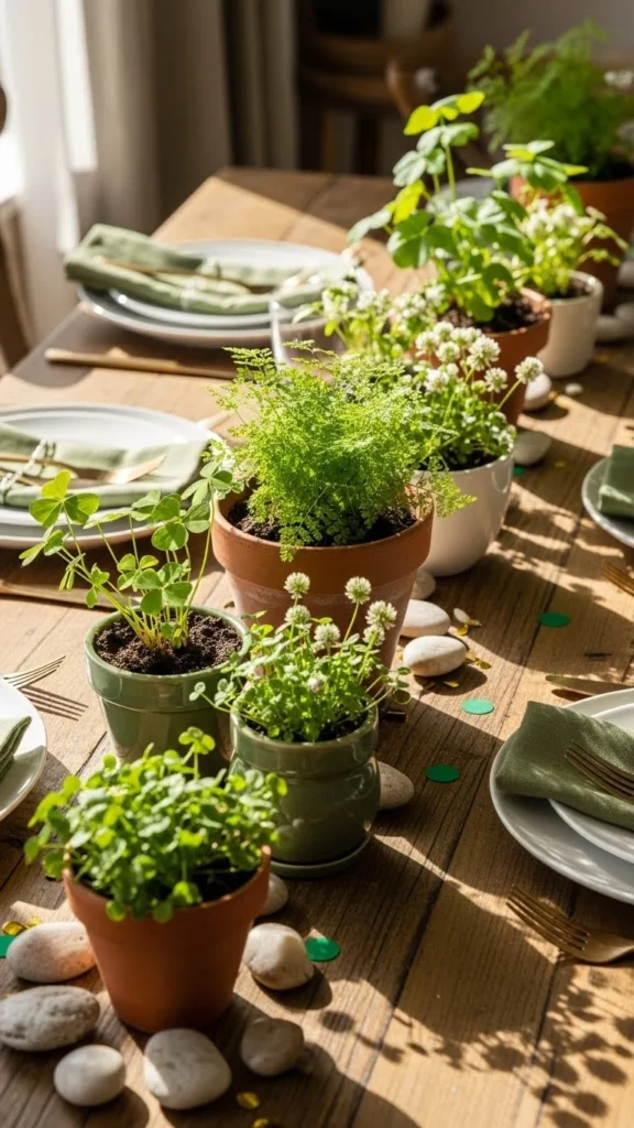 Small potted plants double as decor and future home accents. Use herbs or simple houseplants. Space one between every two place settings. Guests can even take one home. This idea keeps waste low and effort minimal.