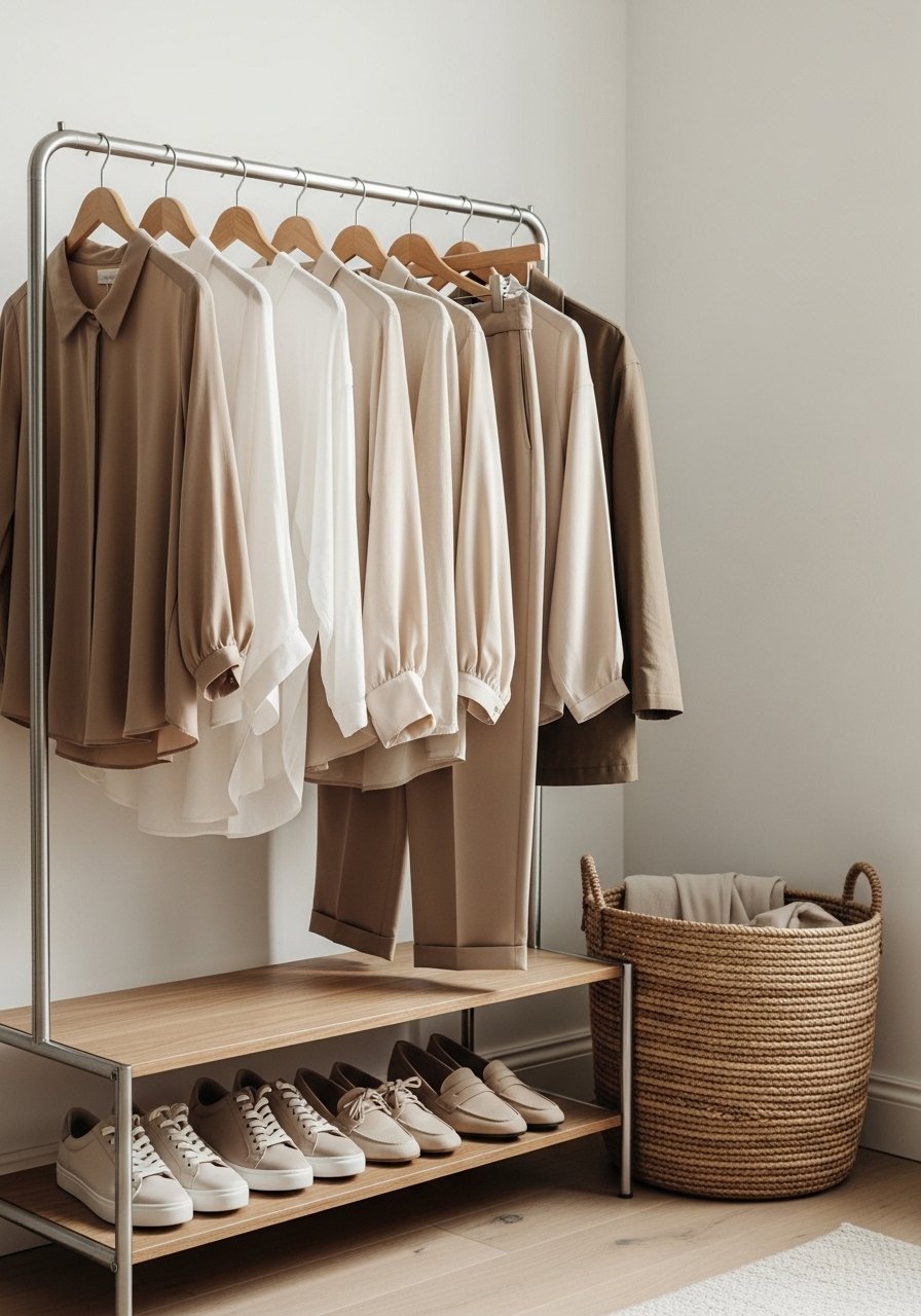 I swapped a bulky dresser for an open clothing rack to visually zone a dressing area. Keep hangers uniform, group items by color, and add a low shoe shelf to reduce visual clutter. I added a woven basket for off-season storage. Avoid overcrowding the rack — aim for 60–80% capacity so items breathe. This creates a boutique-like corner that feels intentional and practical.