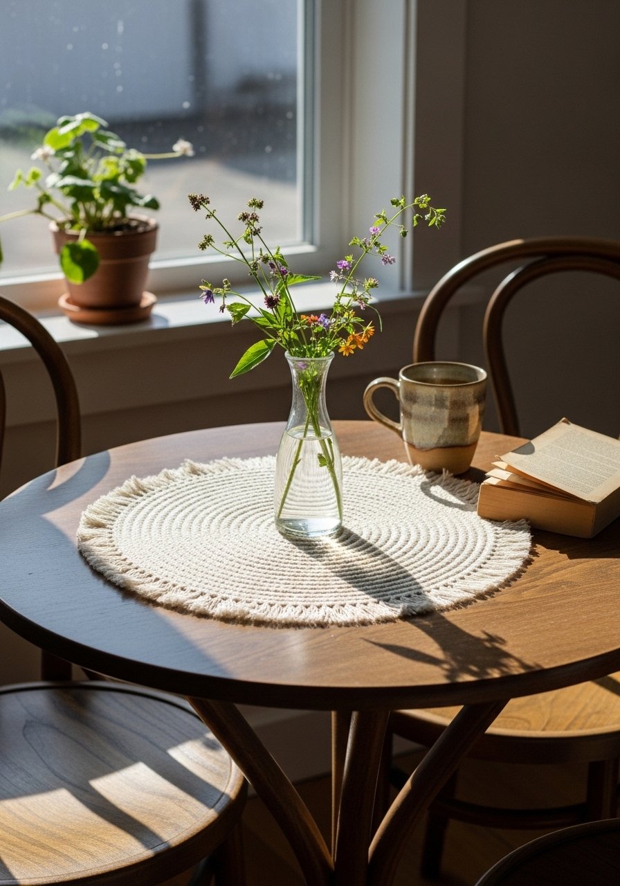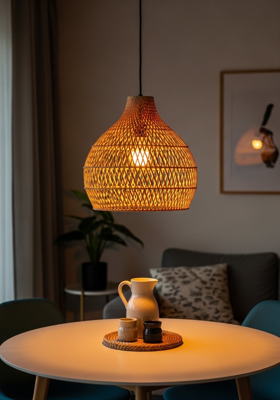 I swapped my basic ceiling light for a rattan pendant above a small round table; that single change created a dining zone instantly. A 16–20" diameter pendant is perfect for compact tables. Pair with LED Edison bulbs for warm light. Avoid pendants that hang too low — keep 30–36" above the tabletop for comfortable sightlines. The pendant makes the area feel deliberate and gives the rest of the studio breathing room.