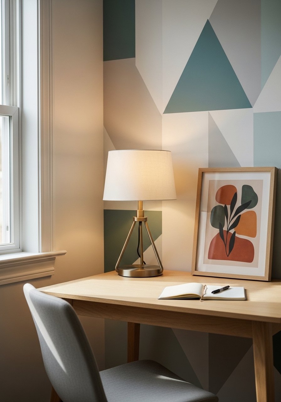 I used neutral peel-and-stick wallpaper behind my desk to create a backdrop for the office zone. It gives the look of a painted feature wall without commitment — perfect for rentals. I kept the pattern subtle and used warm neutrals so the nook doesn’t overpower the studio. Common mistake: using a bold pattern at full wall scale; opt for a half-wall or framed panel if you want a gentler effect.