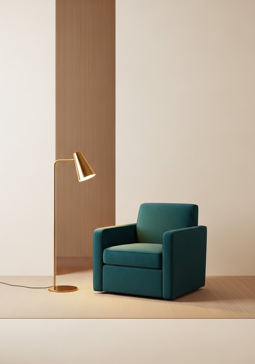 I kept walls, rugs, and large furniture in warm neutrals and introduced one bold piece — a deep teal armchair — to create rhythm between zones. This approach preserves a calm backdrop while making each area feel purposeful. Common mistake: too many accents; pick one focal color and repeat it sparingly across pillows, art, or a small rug. It’s an easy way to keep the studio cohesive yet layered.