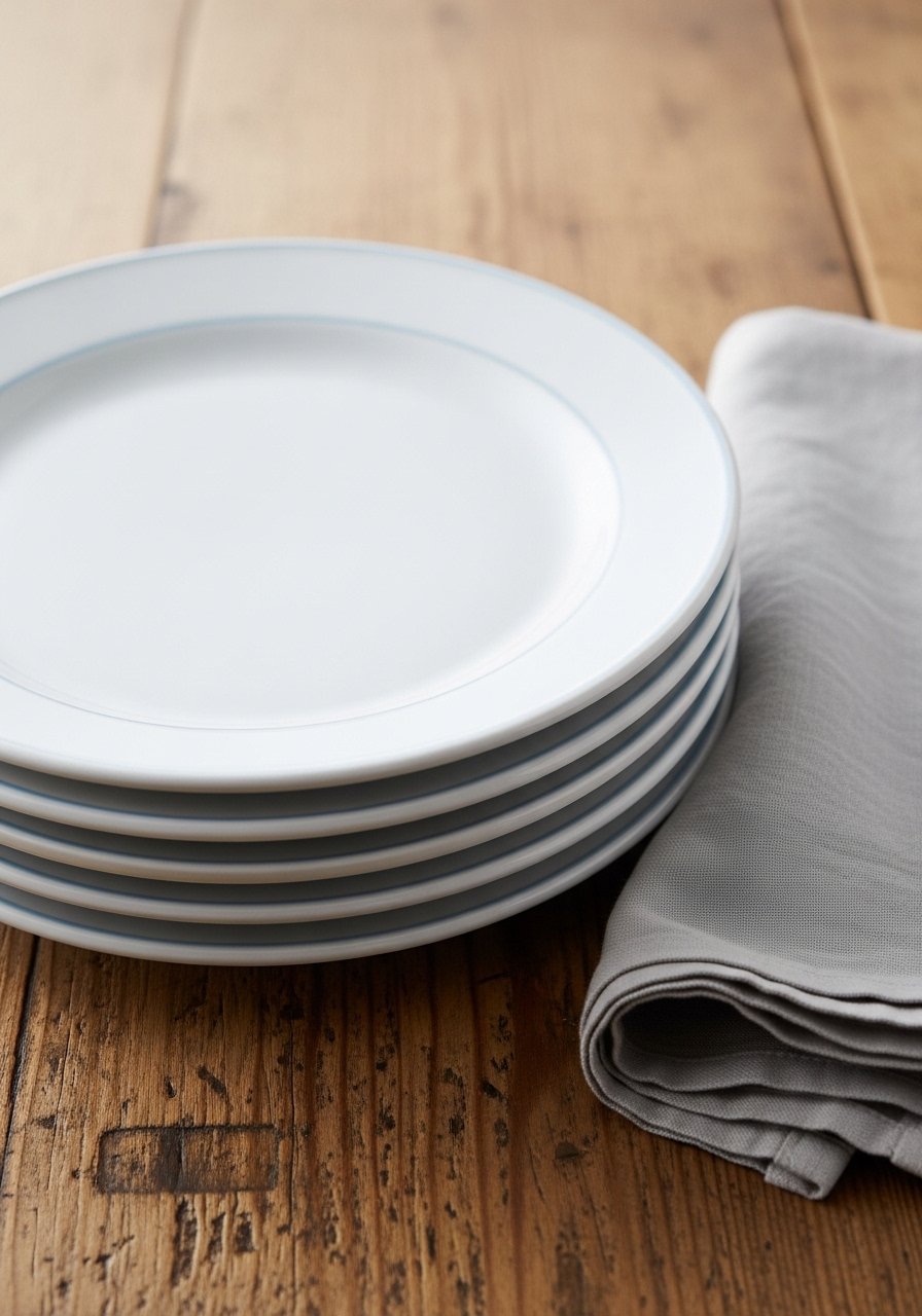 I replaced heavy dinnerware with thinner stoneware that stacks neatly. It looks casual and is easier to store when I use extra place settings for summer guests. The light colors make food pop without competing.