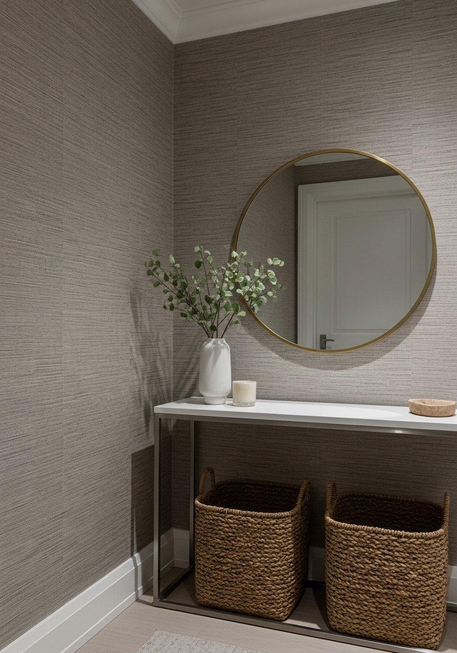 I painted my entryway and then tried peel and stick textured wallpaper and it felt like a new space. Grasscloth or linen-look panels hide scuffs and add depth on a budget. Best for small walls and powder rooms. For a large foyer, use wallpaper on half the wall to avoid overwhelming the space. A common mistake is using a bold texture across the entire room. Stick to one accent wall. Try peel and stick linen texture wallpaper panels for renter-friendly depth.