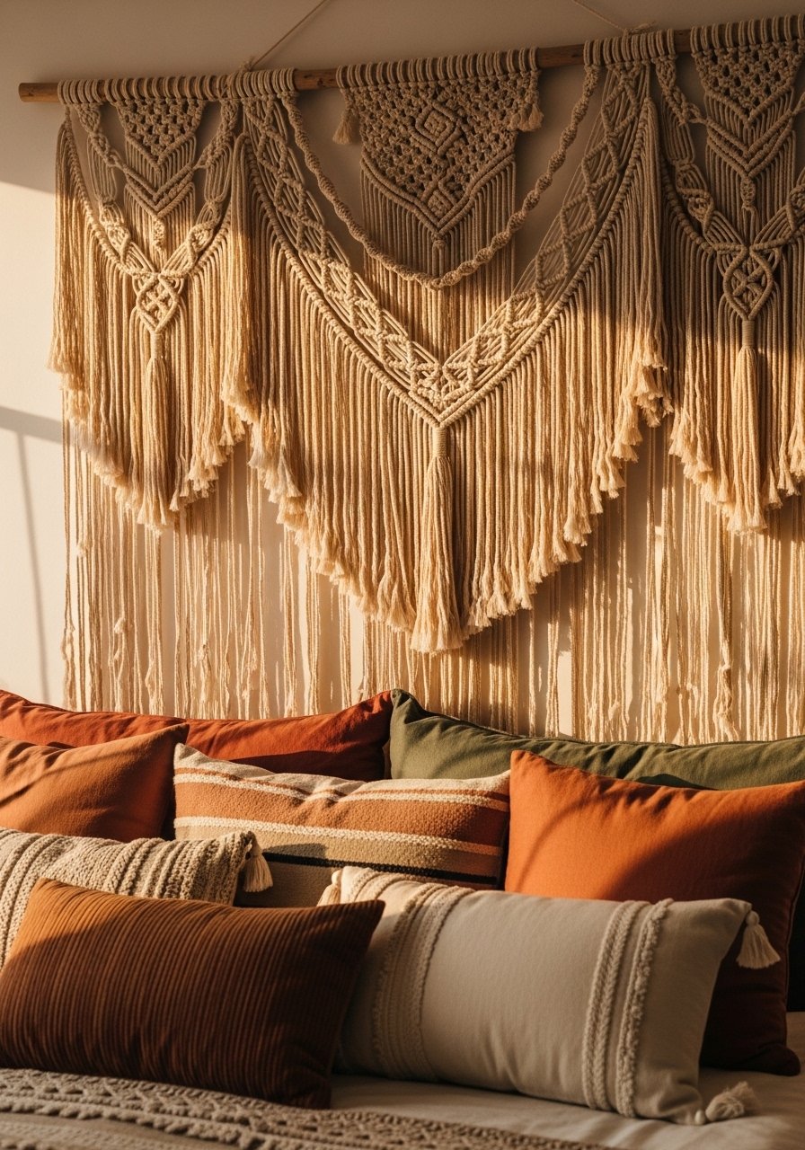 A friend asked me about boho textures last week and I recommended a woven wall hanging above the headboard. It adds height and softness without heavy frames. Works in bedrooms and nurseries, budget $25-120. Keep proportions in mind. A small hanging over a king bed reads lost. My rule is the piece should be two-thirds the width of the bed. Photos may make fringe look fuller than it is. Groom the fringe in person for fullness. Avoid cheap synthetic fibers that look shiny. I like this handwoven macramé wall hanging.
