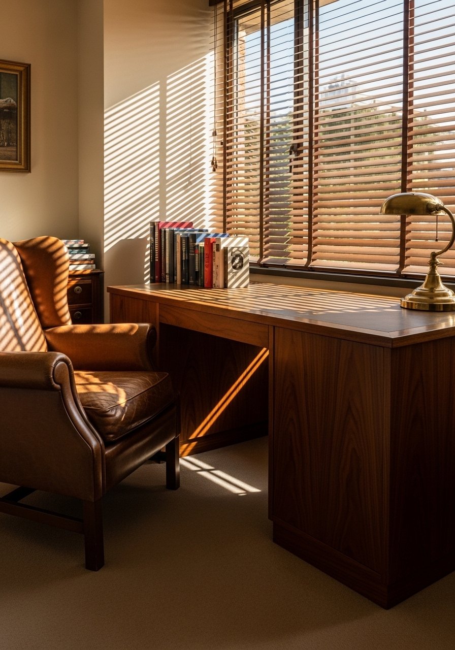 I used a worn leather chair and a raw-edge walnut desk to give my study personality. Leather adds patina and pairs well with warm wood tones. In large rooms, balance with a rug to soften echoes. In small rooms, pick one leather piece to avoid heaviness. A common error is pairing leather only with metallics. Instead, add woven textiles to soften the look. Choose full-grain leather if you want longevity. For budget options, this distressed leather chair gives similar character.