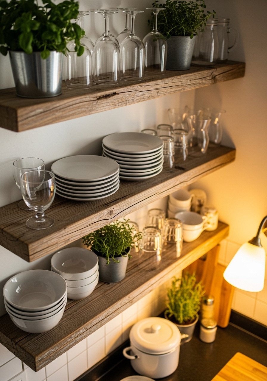 Every showroom I walk into has floating shelves this year. I swapped upper cabinets for distressed wood shelves and the kitchen felt more curated. Use white oak tones for a modern twist. In small kitchens, keep shelves narrow to avoid visual clutter. A common mistake is over-styling them. Use negative space. Mix ceramics with metal for contrast. For real life, secure heavy items to studs. Try white oak floating shelves set for a balanced look.