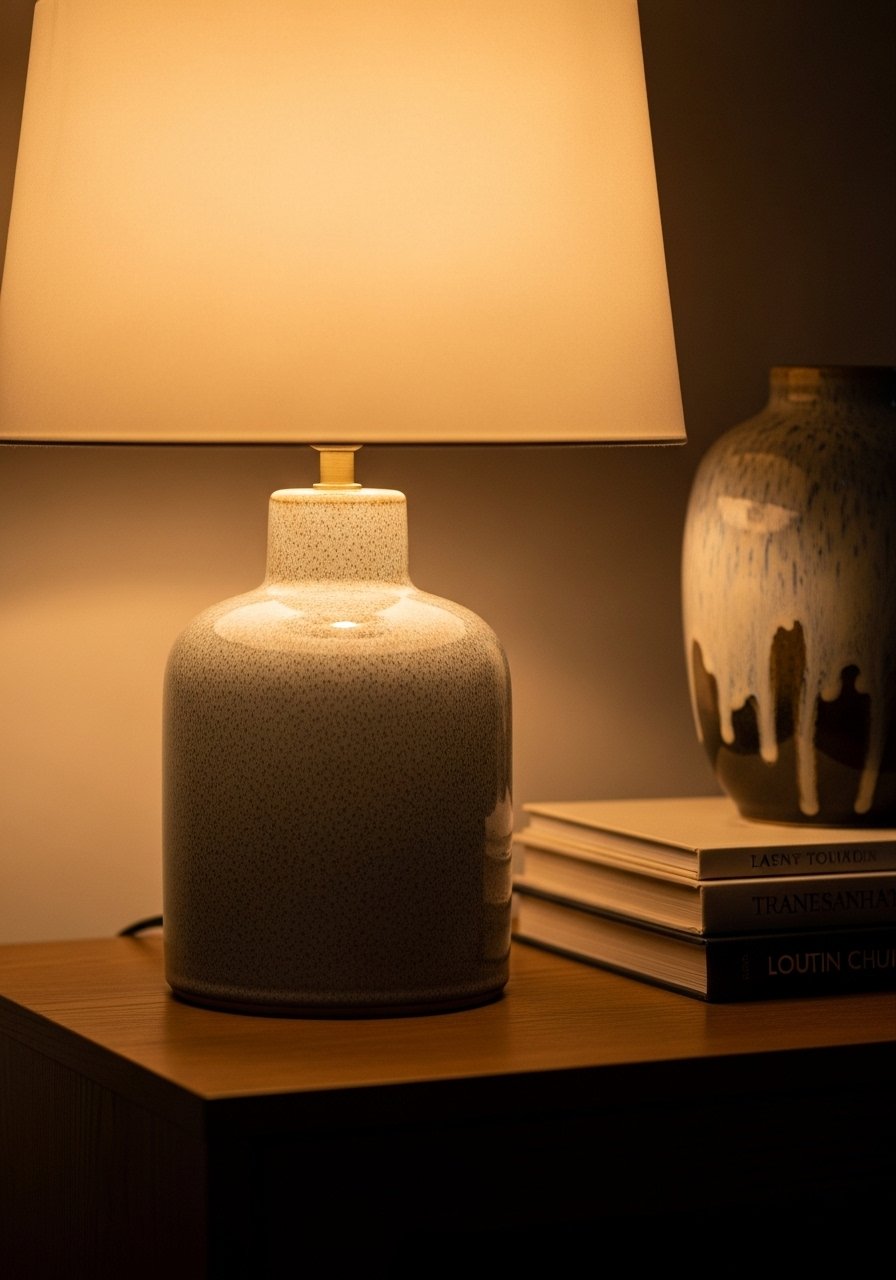 Swapping a glass lamp for a ceramic one added subtle texture and weight to my side table. Matte glazes hide fingerprints and add a tactile element. For small rooms pick a lamp with a 12-14 inch base height. Photos exaggerate glaze depth. In person, the matte finish reads softer. Avoid lamps with noisy hardware. I bought matte ceramic table lamp and it fits under most shelves.
