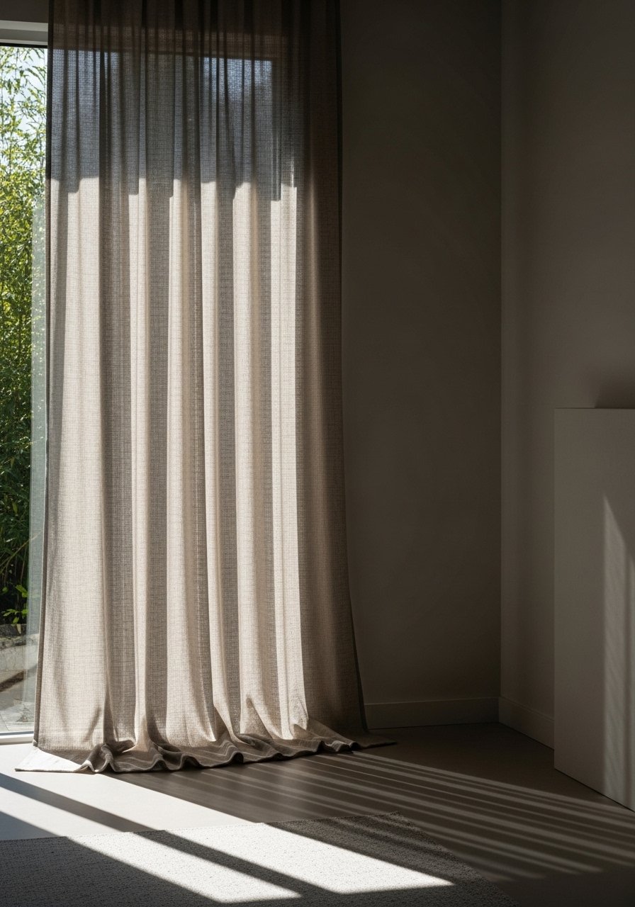 Most people hang curtains at the window frame and shorten their ceilings. I moved my rods up and bought 96-inch linen curtains and the room instantly feels taller. For an 8-foot ceiling go 84-inch panels. For 9-foot ceilings use 96-inch. Curtains should either kiss or slightly puddle the floor. Photos reward length, but in real life puddling collects dust. Avoid patterns that fight with textured walls. I use 96-inch linen blend curtains for living room windows.