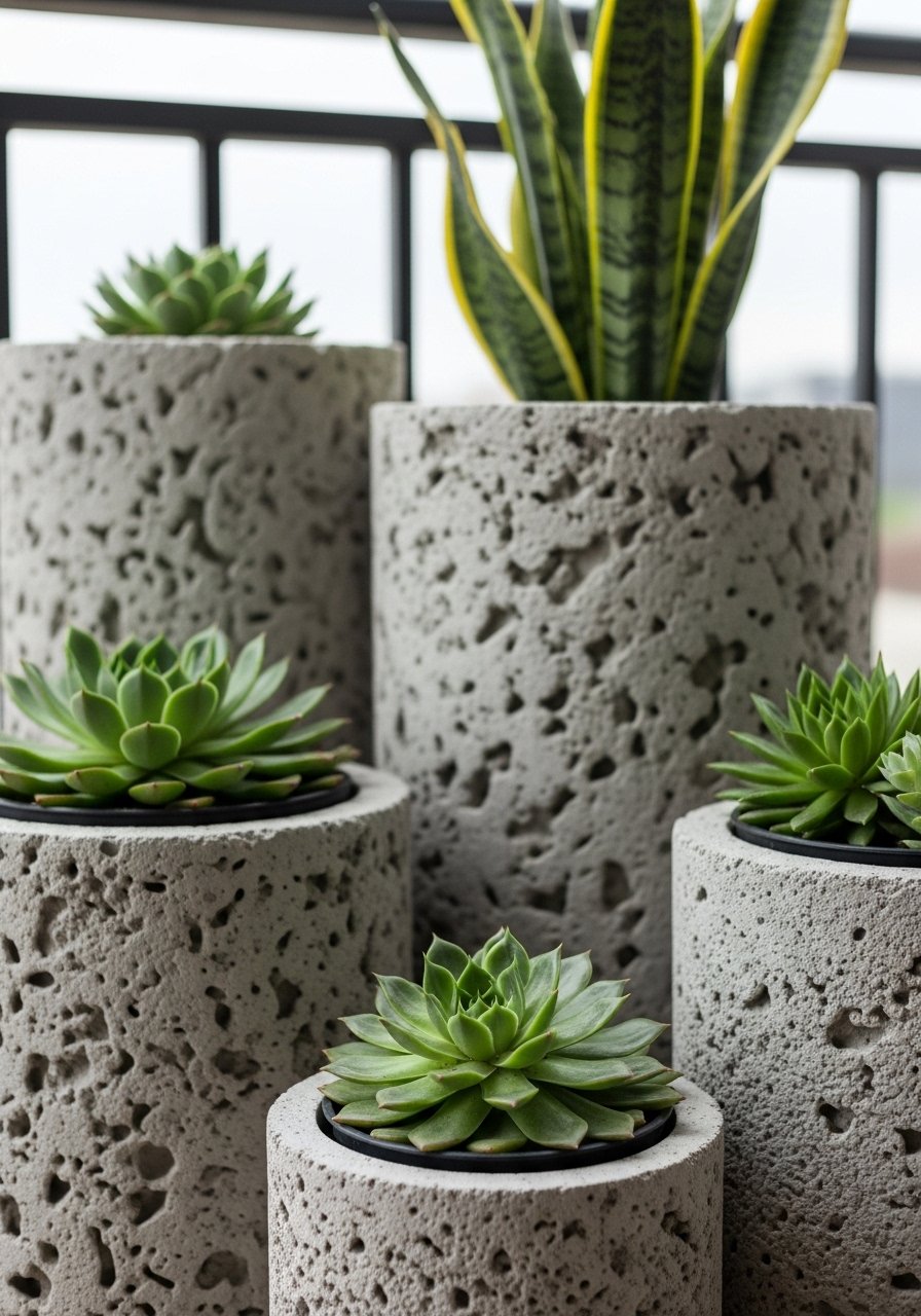 Concrete planters add an industrial texture and are great for minimalist schemes. I group three planters of graduated heights for rhythm. Concrete is heavy. In balconies check load limits. For indoor use, ensure proper drainage trays to avoid staining surfaces. Photos often downplay the weight. In real life, they anchor a space physically. Avoid small planters that look like toys next to a tall sofa. Try concrete planter set graduated heights.