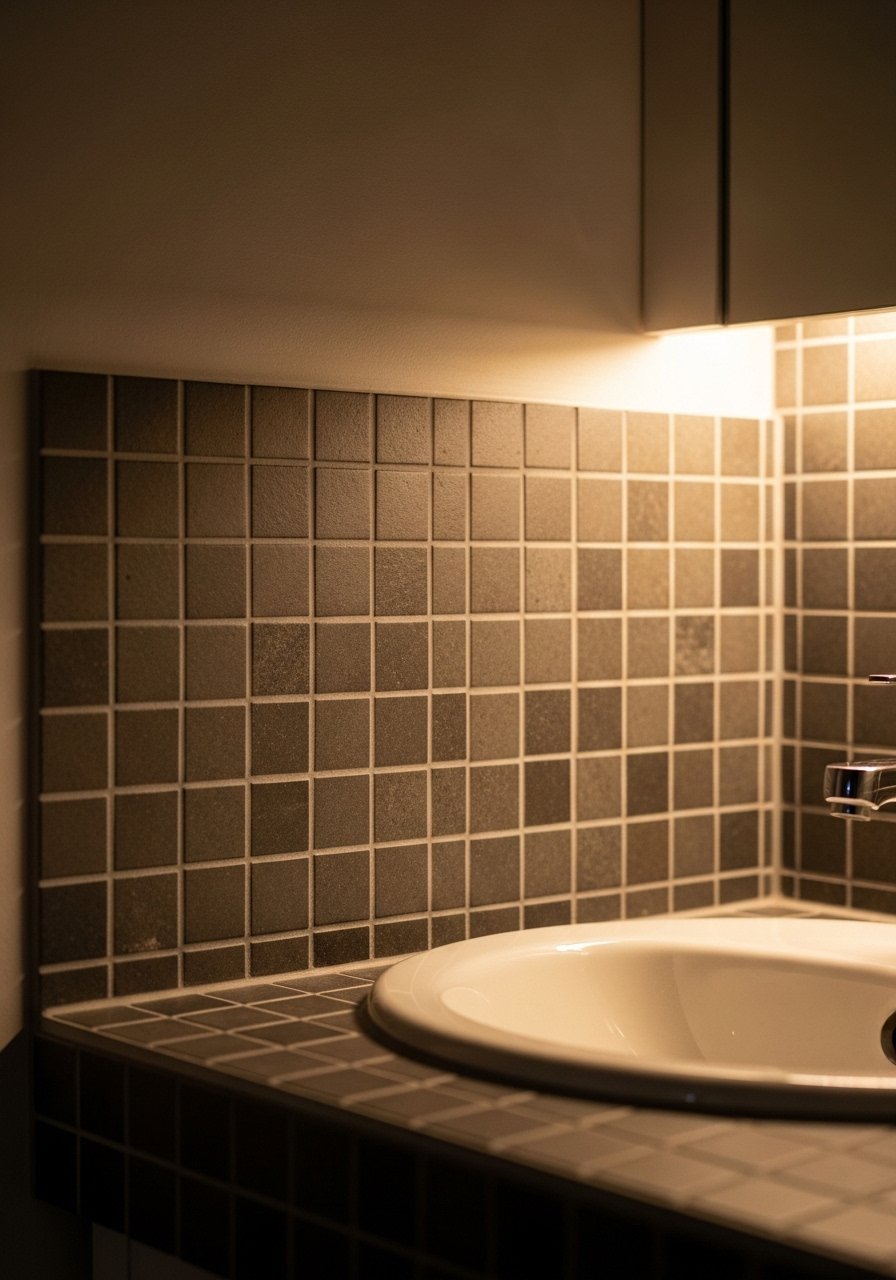 A tiny bathroom can feel luxe with a tactile mosaic backsplash. I used small matte tiles to add depth while keeping reflection low. Grout color matters. I chose a warm gray to hide splashes. In photos mosaic look dramatic. In real life, keep pattern scale small in tiny rooms. Avoid glossy mosaics that show water spots. Installation cost will vary, but peel-and-stick options exist. Try matte mosaic tile sheets for a renter-friendly try.