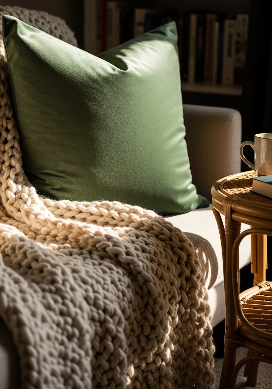 I turned a tiny corner into my favorite spot by layering textures: a cream chunky throw, linen curtain, and a 22-inch euro pillow for the back. I used this cream chunky knit throw and velvet pillow covers to get a cozy, tactile feel. The result feels intimate but not cluttered. Mistake to avoid: piling too many small pillows — stick to three in odd-number groupings to keep it intentional and minimalist.