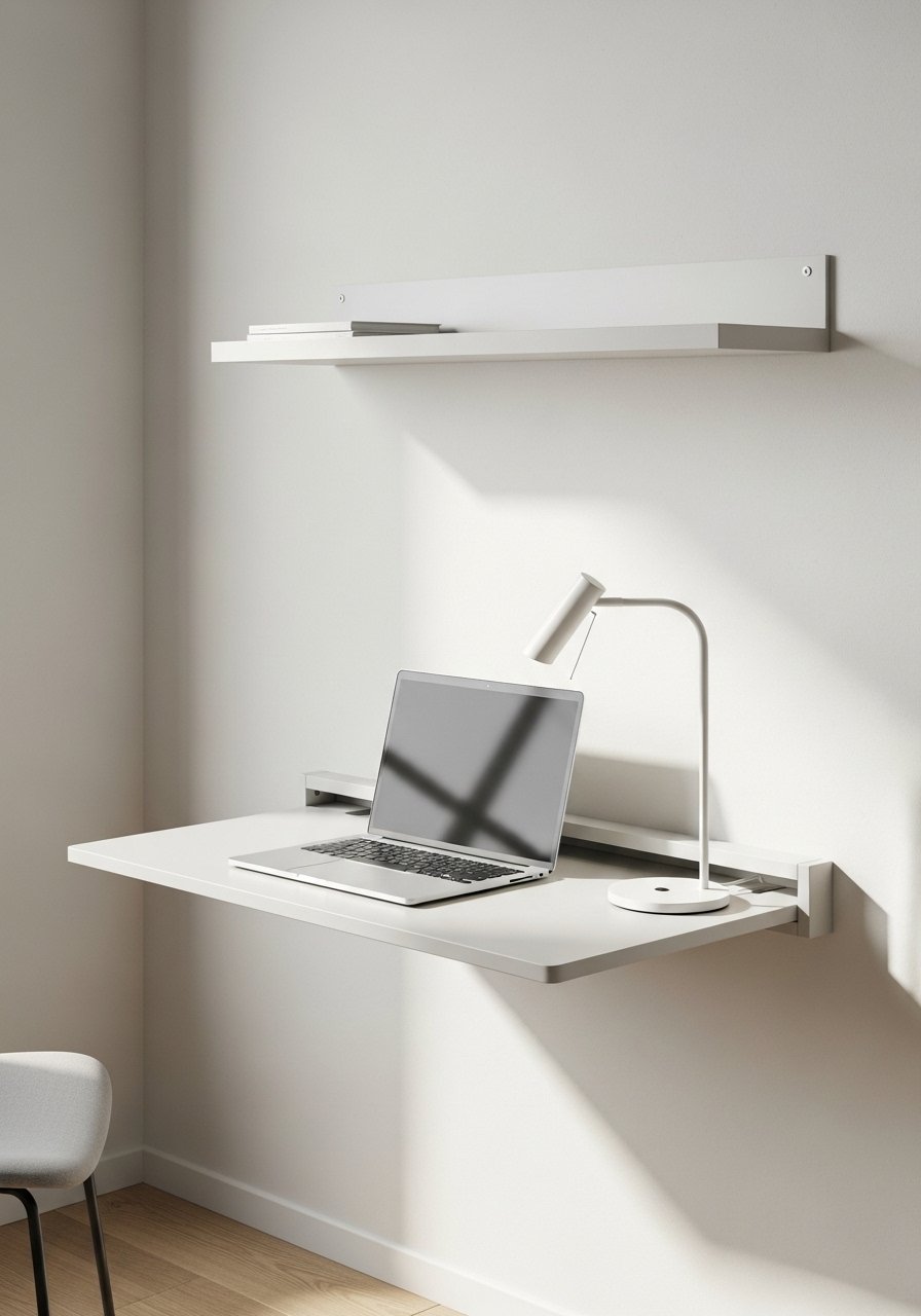 When I needed a workspace, a fold-down desk saved the whole room. I mounted a fold-down wall desk at 30 inches high and added a slim stool. It disappears when not in use and keeps cables hidden. The look is clean and functional, perfect for a minimalist vibe. Don’t make the mistake of choosing a desk without storage — a small shelf or cubby prevents papers from spilling onto your sofa.