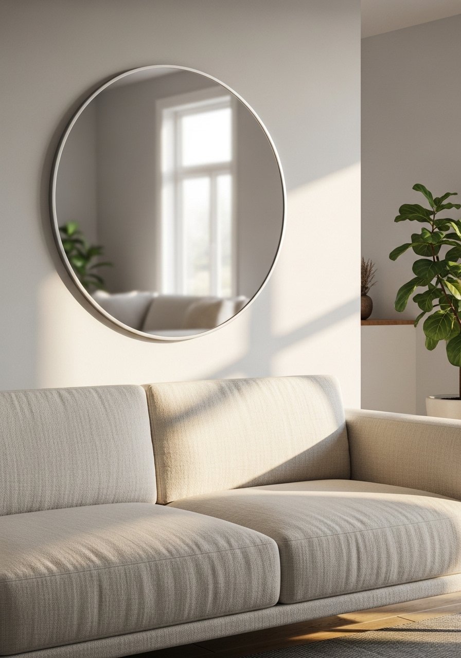 I propped a 36-inch round mirror in a dark corner and it opened the whole room. Mirrors reflect light and double the perceived space without any renovation. I pair it with a slim console and a tall plant for scale. Avoid hanging a mirror too high — it should reflect eye level to feel natural. This trick brightens the room and makes furniture placement feel intentional rather than forced.