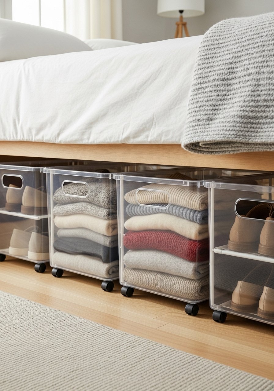 Under-Bed Storage With Rolling Bins for Seasonal Clothes