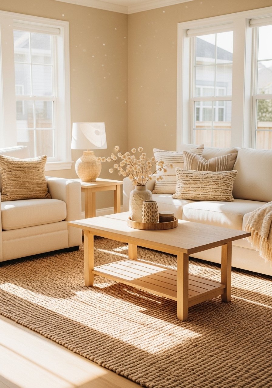 Buy throws and pillows seasonally: I swap mine every few months. Cream chunky knit throws are versatile and under $50.