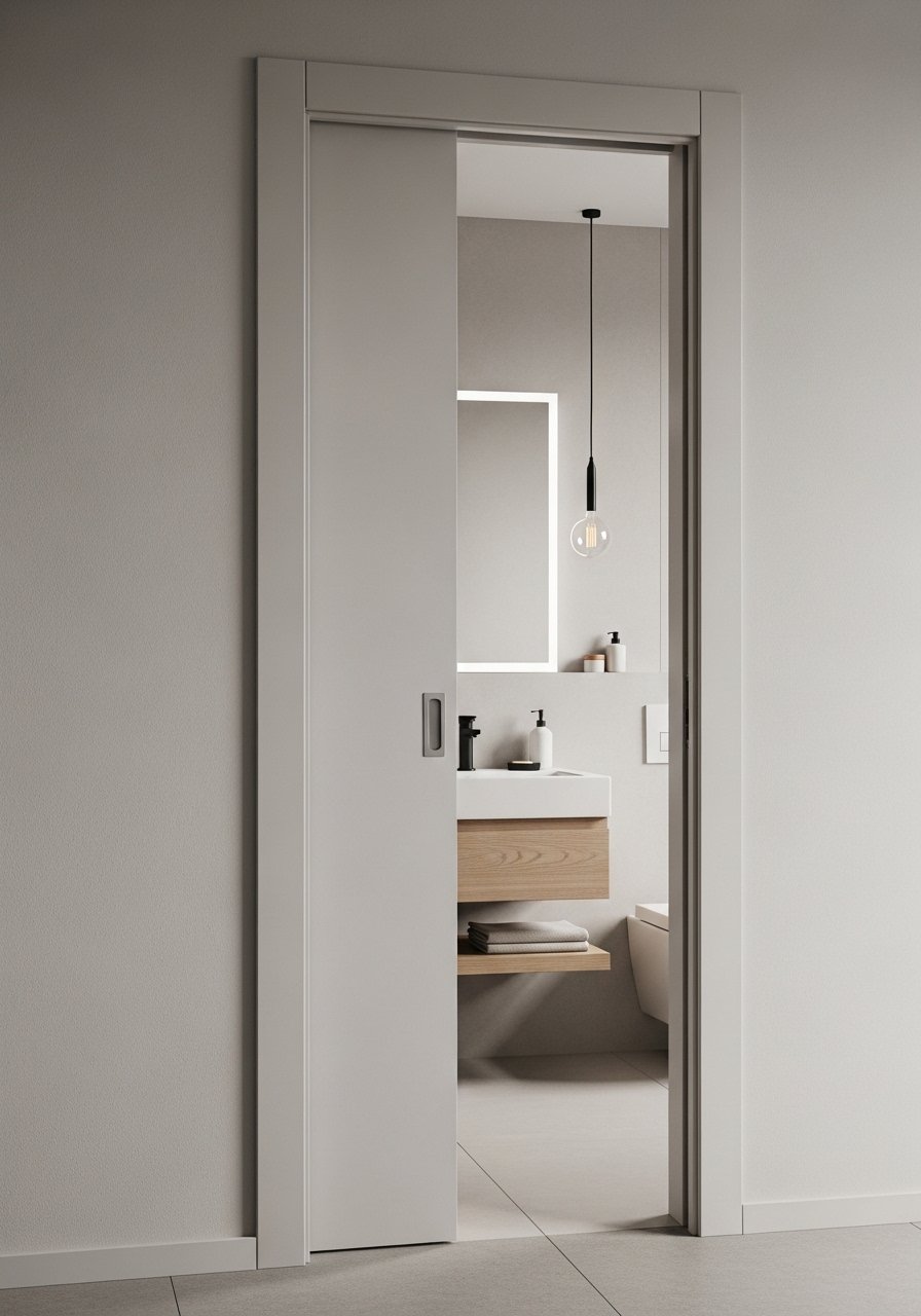 Replacing a swinging door with a pocket door reclaimed valuable floor area in my bathroom. The pocket door eliminates clearance issues and allows furniture placement right up to the doorway. If you’re renting, consider a curtain solution that mimics the pocket door effect. Mistake to avoid: assuming every wall can host a pocket track — check for studs and plumbing before planning. This change is game-smart for tight layouts and improves flow instantly.