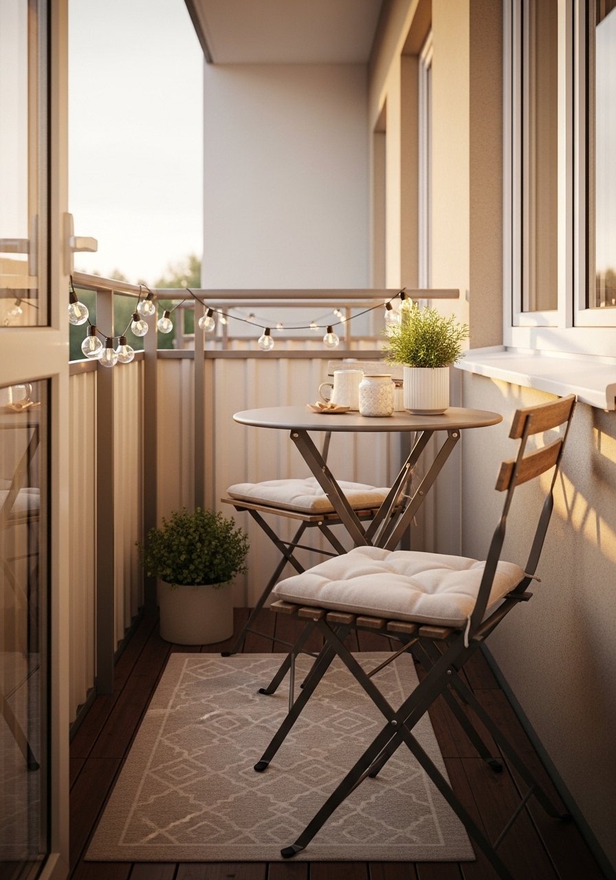 Tiny Balcony Styling With Foldable Bistro Set