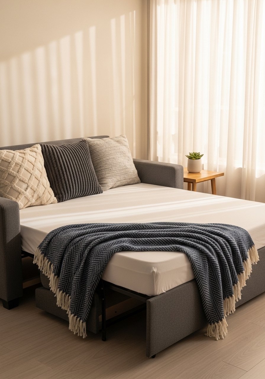 A convertible sofa-bed gave me sleeping space without a permanent bed. I chose one with a memory foam mattress and slim arms to keep the footprint small. It’s comfortable for guests and looks like a sofa when closed. Mistake to avoid: choosing a low-quality mechanism — test it in-store for smooth operation. This is an essential solution for tiny homes that need to flex between living and sleeping zones.